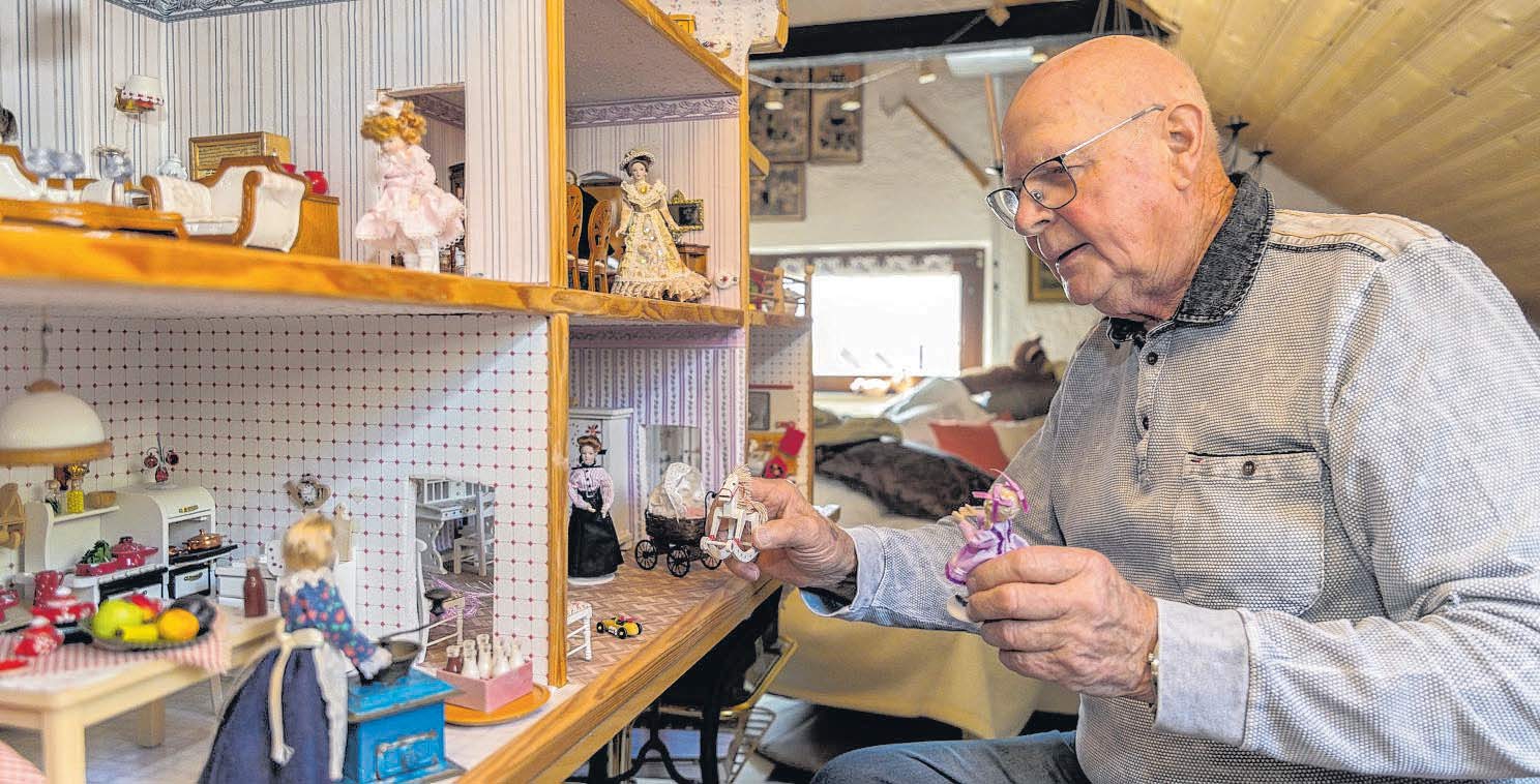 So haben die Bergener Günter Ackermann wohl selten gesehen. Nach seiner Amtszeit als Bürgermeister will er unter anderem für seine Enkel das Puppenhaus erweitern. FOTO: DAVID RÖTZSCHKE
