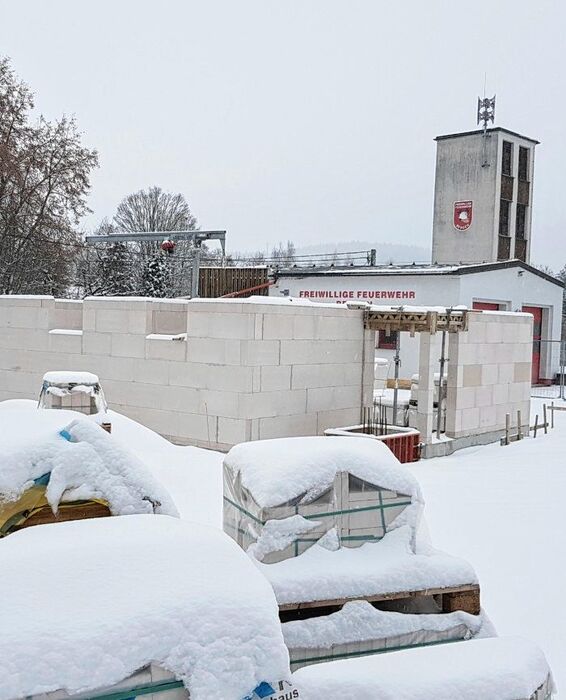 | Anbau an Gerätehaus: Erste Wände stehen |
