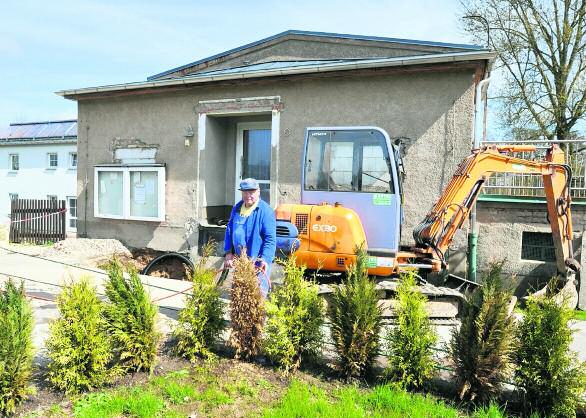 Beim Bau des Bürgerbegegnungszentrum Bergen ist der 1. Bauabschnitt vollendet, nächste Woche wird gefeiert. Jürgen Lorenz kümmerte sich gestern um die Außenanlagen am ehemaligen Sportheim. –Foto: Silke Keller-Thoß |