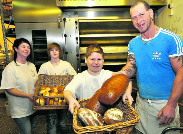| VON LUTZ HERGERT BERGEN —Gerd Wunderlich war froh, als er wieder Semmeln aus seiner Hausbäckerei essen konnte. Die Treppe hoch gebracht hat sie ihm sein Sohn Steffen. Der Bäckermeister führt seit 2002 die Geschäfte in der Bergener Bäckerei Wunderlich. „Fußballpolitik wird in der Backstube gemacht.“ Nach dem 11. September 2011 war es vier Monate still in der Backstube: Der Firmenchef hatte sich bei einem Fußballunfall unter anderem das linke Sprunggelenk gebrochen. Konsequenz für kickenden Bäckermeister: „Schluss mit dem Fußballspielen.“ Heute sieht er seine Zukunft als Co-Trainer bei dem Abstiegsbedrohten Bergener Klub. Sein Ausstieg aus dem Spielbetrieb hat handfeste wirtschaftliche Gründe. Neben Steffen Wunderlich arbeitet auch seine Frau Peggy im Betrieb: Dadurch hängt der Broterwerb der ganzen Familie von der Bäckerei ab. Außerdem muss der 35-Jährige die Kunden zurück holen. Da ist er zuversichtlich. „Wiedereröffnung war am 10. Januar. Die Leute haben uns nicht vergessen.“ Das Thema Fußball wird die Bäckerei trotzdem weiter verfolgen. Die Kicker treffen sich bei Steffen Wunderlich zu einer Art Stammtisch. „Man kann sagen, dass die Bergener Fußballpolitik in der Backstube gemacht wird.“ Enno Wunderlich hatte 1912 die schon wenige Jahre in dem Haus an der Plauener Straße existierende Bäckerei übernommen. Das genaue Datum ist den Nachfahren nicht mehr bekannt. Er führte die Geschäfte mit einer zweijährigen Pause, als er im Ersten Weltkrieg an der Front war, bis 1945. Da er im Dritten Reich politisch aktiv war, eröffnete sein Sohn Werner die Bäckerei 1948 wieder. Nach dessen Tod führte Frau Christa das Geschäft bis 1985 und übergab es an ihren Sohn Gerd Wunderlich. Der kickte genauso wie sein Vater und sein Sohn bei Turbine Bergen in der Bezirksklasse. Da ihm infolge einer schweren Erkrankung und Durchblutungsstörungen beide Beine amputiert werden mussten, gab er die Bäckerei an Sohn Steffen weiter. Auf eine andere Tradition konnte Anfang des Jahres Anita Ködel zurück blicken: Sie arbeitet seit 25 Jahren in dem Handwerksbetrieb. Gleich nach der Wende hatte Gerd Wunderlich kräftig investiert. „Ich hatte etwa 500.000 Mark in neue Technik und Ladeneinrichtung gesteckt. Dabei wurde auch gleich der Verkaufsraum vergrößert.“ Dadurch blieb sein Sohn – bis auf den Kauf einer neuen Kühlanlage – bisher von größeren Ausgaben verschont. Steffen Wunderlich gilt in Bergen als „der Semmelbäck“. Natürlich beherrscht der Handwerksmeister auch die Kuchen- und Feinbäckerei. Mit der Neueröffnung wurde das Angebot um einen warmen Imbiss erweitert. Jetzt kann zu frischen Semmeln auch Bratwurst oder Bockwurst gekauft werden. All die Produkte gibt es an der B 169 ab früher Stunde zu kaufen. Filialen hat der Betrieb aktuell keine. „Als 2004 unserer Straße gebaut wurde, sind die Tageseinnahmen auf 80 Euro gesunken. Damals hatten wir zuerst einen Verkaufswagen, später eine eigene Verkaufsstelle in Neustadt.“ Die wurde aber inzwischen wieder verkauft. Für Steffen Wunderlich war es nie eine Frage, den Beruf des Bäckers zu ergreifen: „Mit Pantoffeln auf Arbeit gehen. Wer kann das schon?“ Da spielte auch das zeitige Aufstehen keine Rolle. „Ich habe manchmal schon vor der Berufsschule in der Backstube gestanden“, erinnert sich die vierte Generation der Bergener Wunderlich-Bäcks. Die fünfte steht schon in den Startlöchern. Die Söhne Dean (zwölf Jahre) und Domenic (zehn) zeigen jetzt schon dafür Interesse. Und auch für den Fußball: „Die Uroma hat ihnen immer die Fußballschuhe geputzt.“