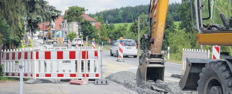 | Eine Wanderbaustelle gibt es derzeit an der B 169 in Bergen. Dort werden Grundstücke ans Abwassernetz angeschlossen. |